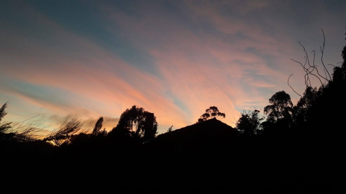 Escalera de acceso a la azotea con vista panorámica a las sierras y al cielo nocturno