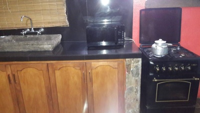 Habitación independiente (16 m²): Ideal para huéspedes, equipada con cocina a leña, frigobar, horno, cocina, armarios y sillón marinero doble.
