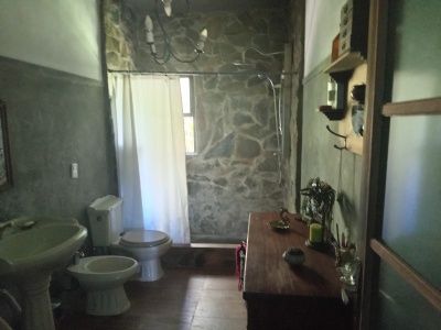Baño con duchero de piedra y columna con chorros de diferentes potencias