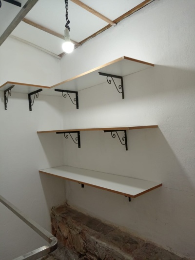Garaje techado abierto (16 m²): Funcional y cómodo, con muebles para guardado.