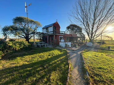 Chacra de 5 hect´reas con dos casas, una de 4 dormtiorios uno en suite, baño, cocina comedor con estufa a leña, alero, y la otra casa de 1 dormitorio amplio, cocina, baño y living comedor amplio tambien, con alero, y pegado otro dormitorio mas con baño que se entra por fuera. Muy linda chacra, a dos kilómetros de la ruta, zona tranquila, media escondida la chacra , lo cual le da seguridad y tranquilidad. Pozo de agua con bomba, parque, tajamar, vista despejada. Consulte y coordine visita